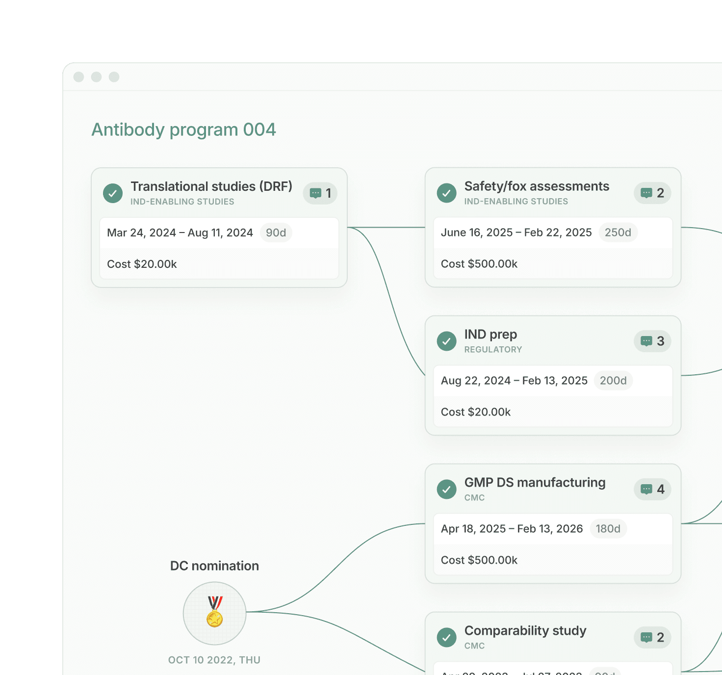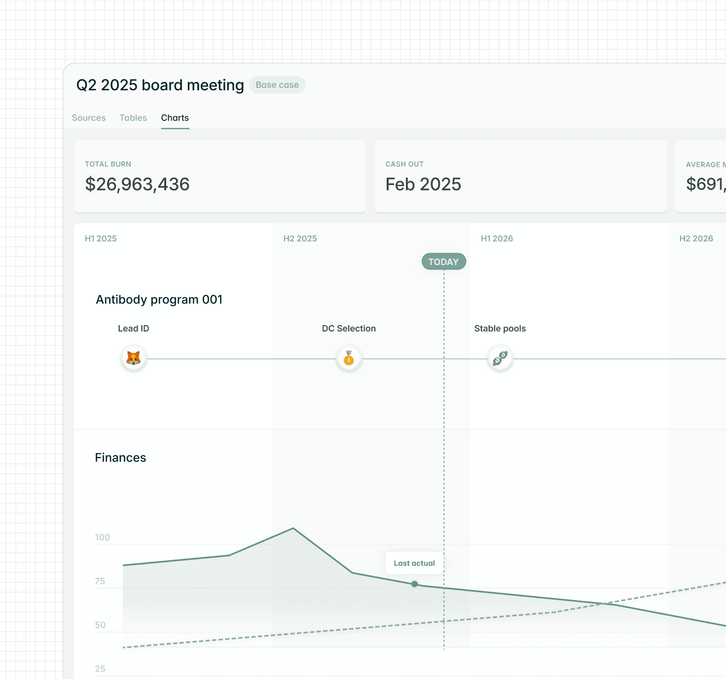 Connect scientific goals, financial models, and execution in one operating plan.